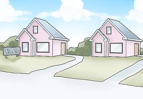 Obtain a listing of properties in foreclosure. If you do not want to go the real estate broker route, you can find the properties yourself. Call around to local real estate agencies and ask about available foreclosed properties. Lenders that are selling properties at auction will also have information about the properties available to interested buyers. Search online for a list of foreclosed properties for sale. Sometimes, these databases will require a fee.