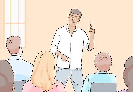 Offer to give talks about caring for animals in exchange for a donation. Ask nearby schools, community centers, or libraries if you can come and speak about pet care. Let them know that you'll give an informative talk in order to raise money for the animal shelter. Then, determine what the focus of your talk will be.Tip: Residents of a senior center might be interested in learning about the health benefits of keeping a pet. You should tailor your talk to your audience. For example, if you're speaking to a group of school children, talk about basic pet care and the types of animals that the shelter cares for.