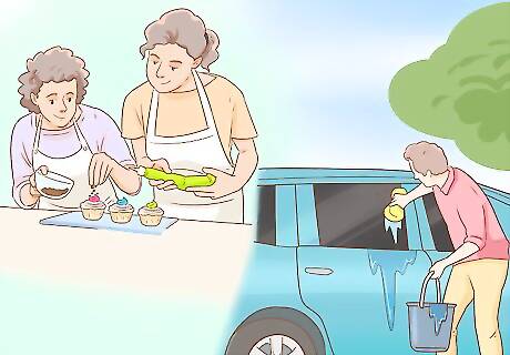 Hold a bake sale or car wash to get donations. Set up a bake sale at your school or community center. Decide if you'd like to sell treats for humans, animals, or both! If you don't mind getting messy, washing cars is another familiar way to fundraise. You could wash cars for a small fee that you donate. These are great events to do with friends or other people from the animal shelter. Don't forget other classic ways of raising money, such as yard or garage sales. You could also hold a pledge drive and participate in a marathon or sports event to raise money.