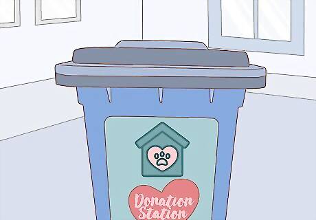 Set up donation stations at local pet stores or vet clinics. Ask these businesses if you can place a small donation box at their front desk or check out. Include information about the animal shelter and describe how the funds will be used. You don't have to limit yourself to animal-related businesses. Check to see if you can leave donation stations at your school, church, or neighborhood businesses.