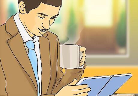 Drink some coffee. It’s common knowledge that caffeine helps alleviate sleepiness, and one of the most common sources of caffeine is coffee. People often drink coffee to help them wake up in the morning or to give them a boost when they are feeling too tired. If you need help staying awake and focused to complete your reading and you are old enough to drink coffee, try drinking a cup of coffee. You could also try drinking some tea, soda, or another caffeinated beverage. Don’t drink too much coffee or other caffeinated beverages because it may have the opposite effect. Stick to 1 or 2 cups.