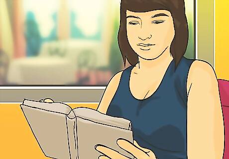 Get comfortable. Find a place where you can be comfortable sitting (or in whatever position you find productive for reading) for long periods of time. You won’t be able to read for very long if you are sitting on a hard chair that makes your back hurt after a few minutes. Keep in mind, however, that you don’t want to get overly comfortable because that could encourage you to fall asleep or become lazy and distracted. Try choosing a comfy chair that keeps you sitting upright, but allows your body to feel relaxed and comfortable. Make sure that you have adequate lighting to be able to read. Trying to read in low lighting can cause strain on your eyes over time.