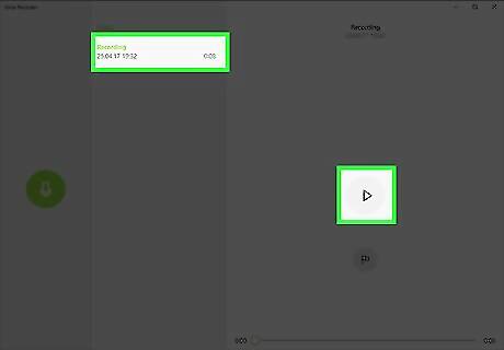 Playback and listen to your audio. Listen to your recording when playing the audio back from your computer. Adjust the slider to the beginning of the audio clip then press the “Play” button. If you are not satisfied with the results you can make a new recording by creating a new file. On the standard sound recorder on Windows Vista, 7, 8 and 10, it does not allow you to playback the audio. You must open the file after it has been saved.