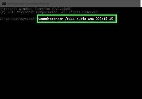 Use the command prompt to discreetly record audio. The standard Sound Recorder on Windows Vista, 7, 8 and 10 allows you to create a sound file in sound recorder through the command prompt. Once you enter the command, your computer will automatically begin recording for the specified duration by showing a microphone icon on the taskbar.