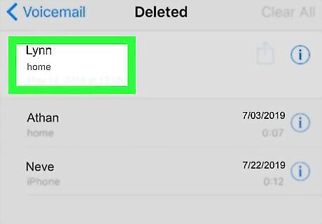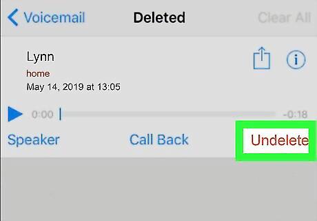 Tap Undelete below the message. This is a blue button in the lower-right corner of the message details. It will move the selected message back to your usual voicemail folder. In older versions of iOS, you'll find this button at the bottom of your screen. Repeat these steps for other messages you want to restore.