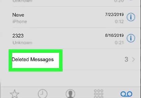 Scroll down and tap Deleted Messages. If you have any deleted messages, you'll see this option all the way at the bottom of the list. Your deleted messages will appear. This option will only show up if you have deleted voicemail. Depending on your carrier and phone settings, deleted messages may be permanently removed from your iPhone or iPad after a while.