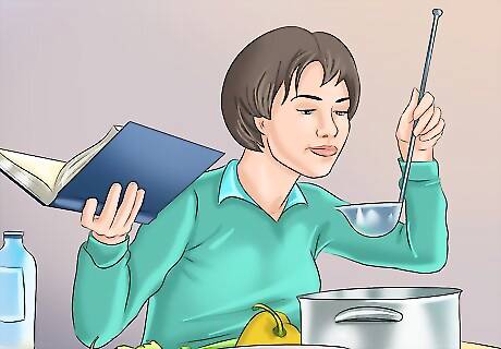 Pay attention to sensations. Getting used to recognize your sensations while make it easier for you to be mindful of them during times of high anxiety and will decrease the number of anxiety-starting thoughts that you have on a regular basis. Be aware of what you see, hear, feel, taste, and smell. For example, while cooking dinner, pay attention to the different textures and colors of the ingredients, the sounds of your cooking tools, the aromas that are produced, etc. When brushing your teeth, notice how the toothpaste tastes and smells. How does the toothbrush feel in your hand? Pay attention to the feel of it on your teeth, tongue, and gums.