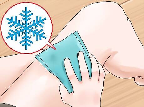 Apply cold compresses to swollen areas. Cold reduces blood flow to areas, which reduces swelling and may also provide some comfort. Apply cold packs or compresses to any areas on which you’re experiencing edema to help reduce it. You can place a cold compress on swollen areas intermittently for 10 to 15 minutes, once every two hours or as needed. Make sure you always wrap ice packs in a towel or t-shirt to prevent skin damage and frostbite.