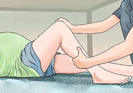 Massage your affected areas. There is some research suggesting that massage can help reduce edema during pregnancy. Give yourself a massage in the affected areas or consider seeing a professional masseuse to help relieve edema. Stroke the areas affected by edema in motions toward your heart, which can encourage the excess fluids to back to your heart. Use firm pressure that does not cause you any pain. Ask your doctor to suggest a masseuse that specializes in pregnancy massage.
