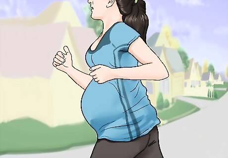 Exercise or get regular movement. Doing cardiovascular exercise can help get your circulation moving and flush out excess fluids. Aim to get some form of physical activity every day to help minimize edema. Discuss your with your doctor before you start to ensure it’s safe for you. Try and get at least 30 minutes of exercise per day. If you were more active before your pregnancy, you can continue at the same pace as long as your doctor approves of it. You can do any type of cardio training to help reduce edema and support your health. Beyond walking, consider running, swimming, rowing, or biking.
