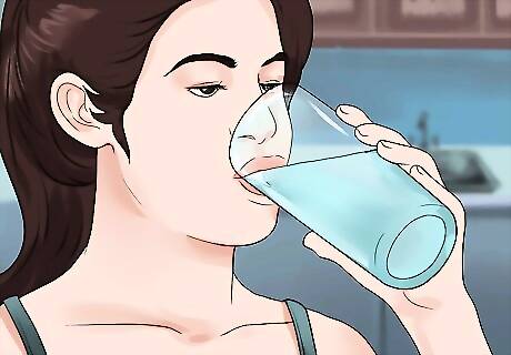 Drink plenty of water. It seems counterintuitive, but staying hydrated is one of the best ways to flush out excess fluid. Drinking plenty of water throughout the day will help you stay hydrated, support your pregnancy, and can help minimize edema. Water is your best option to help flush out excess fluids. Aim to drink about 10 cups (2.3 liters) per day or more if you are active or feel you need it. Avoid sugary drinks, especially soda and processed fruit juices.