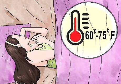 Sleep in a comfortable and cool environment. Sleep in a bedroom that is comfortable, cool, and well ventilated. In addition, sleep on your left side if you can. By controlling factors such as the temperature and position, and even having comfortable bedding, you may help reduce any pregnancy-related edema you are experiencing. Sleep on your left side if possible. This position puts less pressure on your inferior vena cava, which is the large vein that returns blood from your lower body to your heart, and can help control edema. Set temperature in bedroom to between 60 to 75°F (15.6 to 23.9°C) for optimal sleeping conditions. Use a fan to keep air circulating or open a window. Make up your bed with natural fabric bedding such as cotton. This can help control your temperature, which in turn may reduce edema.