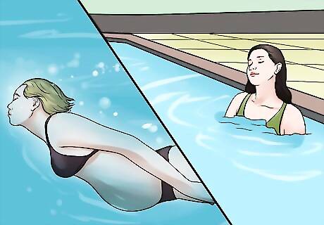 Swim or rest in a pool. If you are outside and don’t have a chance to get inside, you can go for a swim or rest in a pool or other body of water. This can cool you down and take pressure off of your joints, which may reduce any edema you have or prevent swelling. Swimming is an excellent option because it helps circulate blood and the fluids in your body. If you can’t swim, you can float in the water, or even consider just walking in the water.