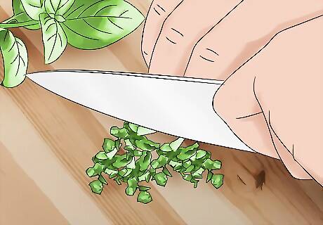 Use fresh herbs as a seasoning or garnish. Fresh herbs add color, nutrients, and bright flavor to food, so get a few sprigs to use in your cooking. To keep their bold color, chop or mince them and add them to food just before serving. Experiment with different herbs to see what flavor combinations you enjoy. These are popular herbs to cook with: Parsley Basil Rosemary Oregano Sage