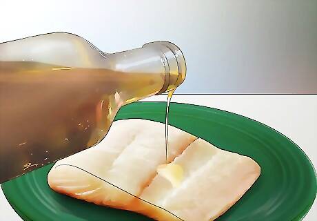 Marinate food before you cook it. Coat meat, fish, or vegetables with a simple vinaigrette for at least 2 hours before you cook it to add a lot of flavor. It's fine to use a marinade that contains healthy oil, such olive or canola oil, as long as it also has other flavorful ingredients, such as:Tip: If you don't have time to marinate the food, massage a flavorful dry rub into it before cooking. Fresh herbs Mustard Minced garlic Vinegar Citrus juice