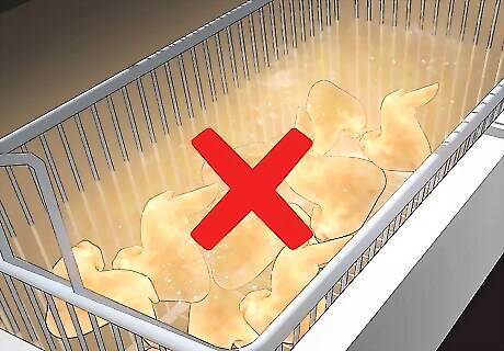 Avoid deep-frying or pan-frying foods. Foods that are battered or fried in oil and grease are high in saturated fat. This is because the food absorbs some of the fat as it fries. Instead of using these methods to get crispy foods, try coating foods, such as chicken pieces or fish, in panko breadcrumbs or crushed cornflakes before baking them. If you choose to stir-fry foods instead of deep-frying them, you can add extra crunch by sprinkling some toasted nuts over the food just before serving.