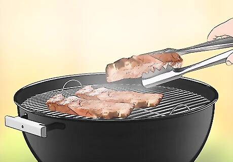 Grill lean meats and vegetables to add a smoky flavor. Grilling is a great low-fat technique since any fat from the food will drip through the grates instead of being reabsorbed by the food. You can also add a handful of woodchips to the grill to enhance the flavor of the smoke. To make it easier to grill vegetables, place them in a grill basket which you can set directly on the grates.