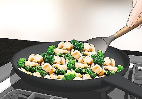 Stir-fry to quickly make a low-fat meal. Skip the batter and slice lean meat or vegetables into thin strips while you heat a skillet or wok over medium-high heat. Spritz a little cooking spray into the pan and add the prepped food. Keep stirring as the food cooks so it heats evenly and doesn't stick. This is a great way to get caramelized flavor without adding a lot of fat. If the food starts to stick to the pan, add a few spoonfuls of water or vegetable stock.