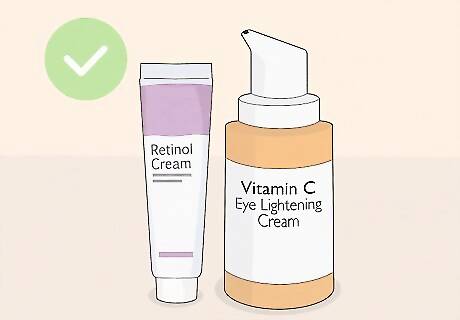 Anything with retinol and vitamin C may help, but only temporarily. Moisturizing eye creams that contain retinol, vitamin C, caffeine, or antioxidants may help curb any discoloration or inflammation you’re experiencing around the eyes. Unfortunately, the results are likely going to be temporary. Follow the instructions on the label of your eye cream to apply it. It may not solve the problem forever, but it should help reduce the puffiness for a bit. Retinol and vitamin C are acidic. Spot test these ingredients on some less sensitive skin first, and don’t use them on your eyes if they irritate your skin.