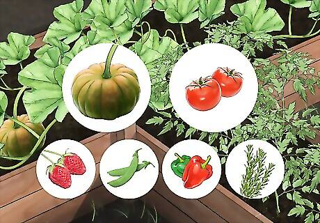 Grow your own vegetables and fruits. Set aside one corner of your garden for tending a few small crops like tomatoes, strawberries, beans, peppers, and squash. Fewer trips to the grocery store will help you save money and fuel, as well as say no to the plastic bags and packages that have a tendency to pile up once you’re there. Raising a selection of your own crops will also ensure that you always have fresh, healthy fruits and vegetables to eat. Make room for a patch of fresh herbs like rosemary, basil, and cilantro. You’ll then have everything you need to put together a delicious meal.