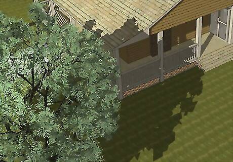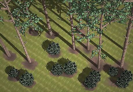Plant shade-producing trees near your home. A wall of natural shade can cool your home during the summer and block cold winds in the winter. Situate your trees near your fenceline to establish a boundary, or disperse them throughout your yard for more of a forest effect. Trees can offer privacy when strategically positioned near windows, patios, and property lines. Prune the lower branches of trees planted on the sunrise side of your home to keep them from obstructing the view.