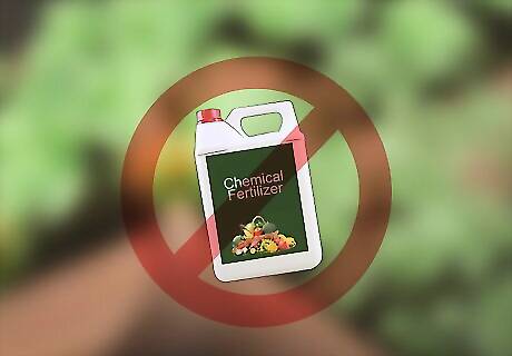 Stop using chemical fertilizers and pesticides. These products contain chemicals that may be harmful to both the user and the surrounding environment. If you want to be more mindful of your cultivation practices, switch to all-natural organic fertilizers and pesticides, or learn to make your own from basic household items. You can also use the material from your compost pile for fertilizer, effectively killing two birds with one stone.