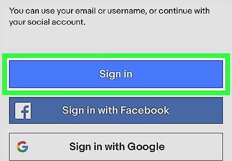 Tap Sign In. If your account is linked to either Facebook or Google, you can choose the Sign in with Facebook or Sign in with Google options instead.