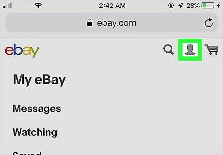 Tap on the profile icon in the top right corner of the page. to your My eBay Account in the upper right-hand corner. This looks like an outline of a person.