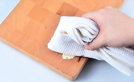 Rub the paste lightly on the stained area. Make sure to rub it in the direction of the grain of the wood. Let it sit for 30 minutes.