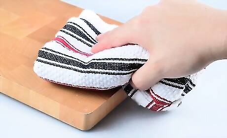 Blot the red wine spill with a damp absorbent cloth immediately as it happens. Make sure to just blot the spot; do not rub it since rubbing might spread the wine over even more of your wooden surface. Continue blotting until there is no more red wine on the table.