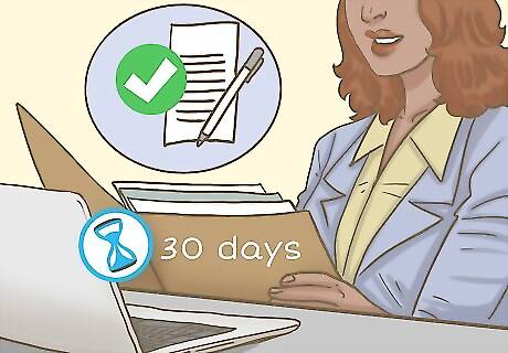 Wait for a response from the credit bureaus. Once the credit bureau receives your letter, it will investigate the entry. Within 30 days, you'll get a letter back from the credit bureau letting you know the results of the investigations and what actions were taken. Save the card you get back in the mail when your letter is delivered. Mark 30 days from the date of receipt on your calendar. If you haven't heard back from the credit bureau by that date, call a customer service number to follow up on the status of your request.