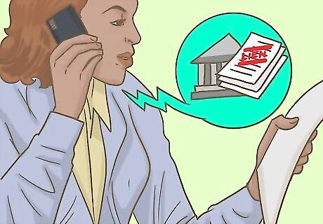 Contact the tax authority that placed the lien. You'll find information about the government agency that placed the lien on your property on the lien document filed in public records. You may also be able to find information on the agency's website. From the homepage, look for a payment tab or link. Some government agencies may have contact information specifically for tax liens. For example, if you have a federal tax lien, you should call the IRS centralized lien operation at 800-913-6050.