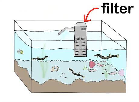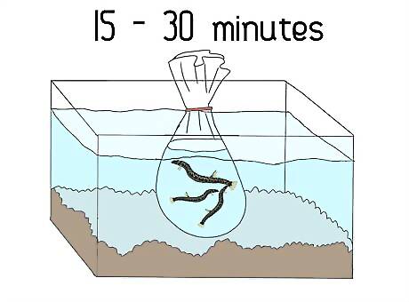 Introduce your bottom feeders carefully. Turn your aquarium lights off to reduce stress, and float the bag in the water. Once the temperature of the bag water and the tank water feel the same, release the fish into your aquarium, making sure you try not to pour any bag water in there. Consider putting the fish in quarantine before adding it to your main tank, as it could be carrying disease or parasites.