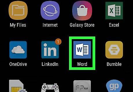 Open the Word app. The app icon looks like a white piece of paper with a blue W in the middle, and you should be able to find it either in the app drawer or on the home screen. If you do not have the Word app, you can download it for free from the Android Google Play Play Store by searching for Microsoft Word in the search bar. When you open the app for the first time, you will be asked to sign in with your Office account. While you can still use the app without signing in, you'll be required to sign in after a certain number of document edits.