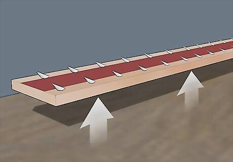 Check the condition of the subfloor. It's very important, regardless of what you want to do with the room next, that you inspect the condition of the subfloor and make any repairs necessary while you've got the carpet off. It'd be a shame to install $800 worth of new carpet over a squeaky floor, or a floor showing signs of mold. Walk around the sub-floor and bounce on it. Subfloor panels should be attached to the wood joists with screws or nails, and if you find some panels that squeak, you can secure it to the joist with ring shank nails. These are grooved nails with more secure gripping power, decreasing the chances that this squeaky area will ever squeak again. About two or three inches from the previous nail or screw, hammer in a shank nail and you'll be set. If your carpeting was damaged or wet, it might have impacted the subfloor. Look for signs of rot or mold. If you see any signs of serious damage or rot, you need to have these panels replaced before installing new flooring.