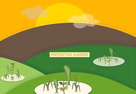 Set a protective barrier around the weeds you want to kill. If you want to use an organic weed killer on 2 or 3 small clumps of weeds, you need to keep the weed killer off of the healthy grass. Bend a thin sheet of plastic or cardboard into a cylinder, and place this around the weed. Then spray the organic weed killer as close to the weed as possible, so that it stays contained within the plastic cylinder. You could also cut the top and bottom off of a 2-liter soda bottle and place that over the weeds to contain the spread of the weed killer spray.