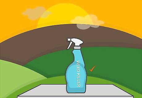 Select the right chemical spray for your weed problem. Different types of chemical weed-killing sprays are better suited for killing different varieties of weed. Read the information on the label to determine which best suits your needs. Some weed killers are sold in large spray cans, while others are intended for spot application. Chemical sprays work most effectively on broadleaf weeds, such as dandelions and other non-grassy weeds. You can find chemical sprays on sale at a plant nursery or even a large supermarket.