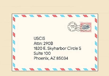 Submit your notice to the USCIS Lockbox Facility. Since decisions on replacement Green Card applications are made at a USCIS service center, mail your notice and supporting documents to USCIS, PO Box 21100, Phoenix, AZ 85036. Since you're mailing to a PO box, you can't use services such as certified mail that allow for tracking and notice of receipt. If you want confirmation when your notice is received, use a private delivery service, such as FedEx, UPS, or DHL. Send your notice and documents to USCIS, Attn: 290B, 1820 E. Sky harbor Circle S, Suite 100, Phoenix, AZ 85034.