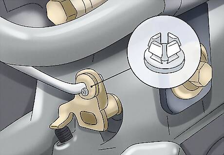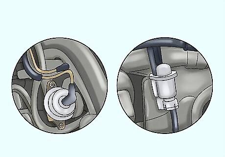 Remove the white clip from the arm of the valve. You won't be reusing this clip, as a new one should come with your new valve. Remove the two bolts holding the valve onto the engine. This is a little tricky, and where the u-joint comes into play.