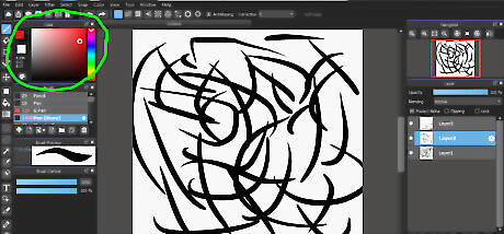 Change the brush color. Make it the color that you want your lines to be. Try experimenting with different levels of saturation. The brush preview window will not show you the color of your brush. It will show you the size, transparency, and type, but not color. You could try experimenting with a new layer to see how your new color will look before you actually apply it. Once you've found the right one, simply delete this layer.