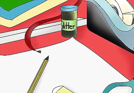 Gather the other material to be used. Assemble everything you need to make your school or work project. You can fix the base material or a chart paper if that is the main surface to add all the other material on and fix it on a sturdy table.