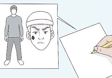 Remember what the thief looks like. If you were robbed in person, then you should have some idea of what the thief looks like. As soon as possible, sit down and write out your description. Include basic information, such as gender, height, age, and race. But also note any distinctive characteristics, such as facial tattoos, deformities, or unusual ways of walking or talking.