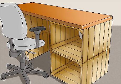 Add a custom desk to your office. Not only will this upgrade the look of your office, it also allows you to build a desk fitting your height. All you’ll need are a few crates and a board, ideally made of plywood. Stack crates up to your desired height at either end. Use nails or screws to secure each stack of crates together, then place your plywood board atop them. You can use mending plates to secure the crates together if you’re worried about the wood splitting.