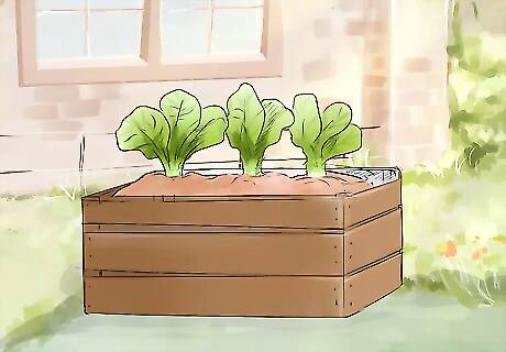Fill wooden crates with soil to make planters. Some crates will work better as planters than others. You need to ensure there’s proper drainage so water can flow through, but soil won’t fall out. If the bottom of your crate is completely solid, you can drill holes in it, then cover the bottom with a piece of burlap. This will let water go through, but keep the soil in the crate.