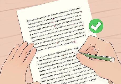 Print out the paper to see errors that are tough to catch on a screen. Sometimes, it can be difficult to edit in a document on a computer or laptop. Hold the paper in your hands and focus on editing and revising 1 page at a time. Use highlighters, pens, and sticky notes to make comments for yourself, and then use this draft to adjust the document on your computer. If you don’t have access to a printer, consider visiting a local library to use theirs, or pay to have your document printed at an office supply store.