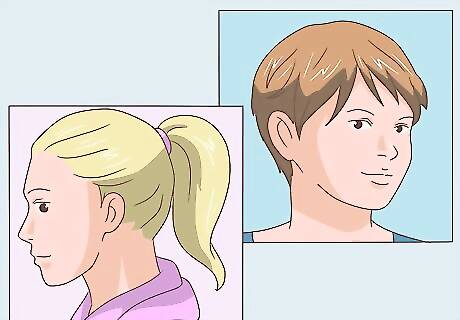 Do your hair. For a Pink Jock, you want it out of the way but still glamorous. Most Pink Jocks will wear French braids, ponytails or messy buns with neon headbands and hair clips etc. Messy buns, at the moment, are particularly in style, and the higher you wear it on your head, the better. Pink Jocks are perky; every hairstyle you wear must be HIGH UP on your head. Think Whoville. Droopy, at-the-neck ponytails? So amateur. Blue Jocks want to be boys, so hair? Think boys. Short, shaggy and cropped. Hair accessories are a big no-no. Except for an exercise band that makes you look like Mikey's older brother from Goonies. If you have long hair and don't want to cut it or can't find a wig, then go for a messy bun. Ponytails and braids are way too girly for a Blue Jock.