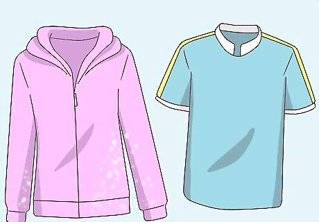 Know what type of clothes you should be wearing. Pink Jocks wear sweatsuits. Preferably pink or purple ones. With sequins. And glitter. And gems. Sunglasses are an added bonus. If it's too hot for a sweatsuit, buy an off-the-shoulder pink T-shirt with someone like Katy Perry on the front and pair with pink knee-length sweatpants. Blue Jocks, your favorite jersey and a pair of shorts is the way to go.