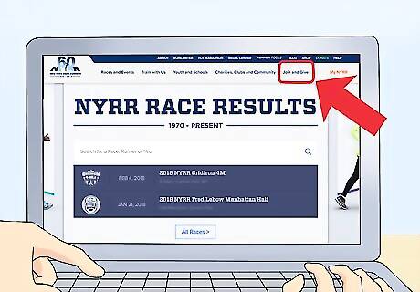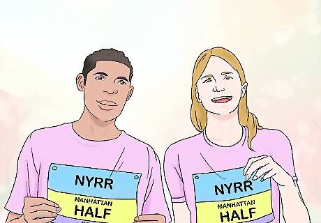 Have a qualifying time at other races to ensure a spot in the marathon. If your official time at other New York Road Runner races is fast enough, you can secure a space at the NYC Marathon. These qualifying times are based on age and gender. Some of these races include the Fred Lebow Manhattan Half Marathon, the NYC Half Marathon, the Women’s Half Marathon, the Brooklyn Half Marathon, and the Staten Island Half Marathon.