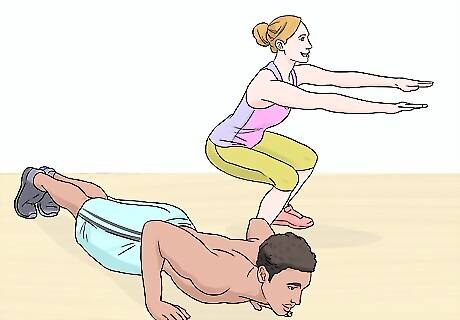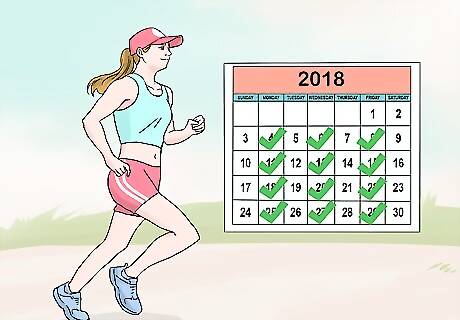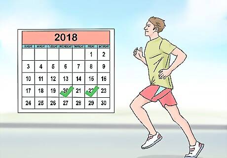 Complete cross training sessions on the days between your runs. Do 1 HIIT or metabolic conditioning class. Finish 1 non-impact aerobic class each week. Round out your cross training with a yoga class. HIIT exercise routines include exercises such as squats, push-ups, jumping jacks, and burpees. You can interchange any of these cross training sessions for an easy 30-45 minute run.
