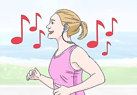 Focus on your music or inner mantra during the race. The noise of the crowds may cause you to speed up too early and leave you with no energy for the end of the marathon. Make a playlist that will help keep your energy up during the marathon. Examples of positive mantras are “I am strong and feel good” and “I am running great”.